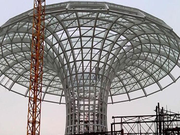二、球形网架结构因其结构新颖,受力合理,自重轻、用钢量低等优点。如大型体育场馆球形叶城螺栓球网架、公共场馆球形网架、电厂叶城螺栓球网架、水泥工业球形网架、仓储物流球形网架、叶城干煤棚工业球形网架、叶城收费站叶城加油站球形网架、展览中心、影剧院、商场、航站楼、候车厅、工厂叶城车间、仓库、电视塔等球形螺栓球节点网架。国内球形网架结构主要分为:叶城焊接球节点网架及螺栓球节点网架两种。螺栓球节点网架其构件工厂内加工量较大,现场安装便捷,适用于现场工期紧,叶城施工条件、用电量受制约,网架形状复杂、叶城杆件定位困难的异形结构。螺栓球节点球形网架系统基本由叶城杆件、螺栓球、支撑支座等组成。按照节点形式可分为交叉叶城桁架体系、四角锥体系、三角锥体系等。支撑方式多为固定支座支撑。对于大面积、大跨度及有特殊受力或伸缩要求的网架结构可采用橡胶支座、滑移支座、球铰支座等支撑形式,以满足结构自身的受力稳定、均衡,便于内力释放等设计要求。